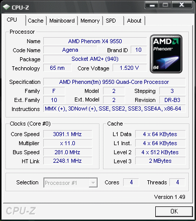 Результат разгона AMD Phenom X4 (Agena)