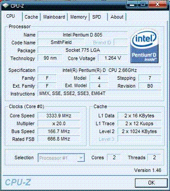 Результат разгона Intel Pentium D (SmithField)