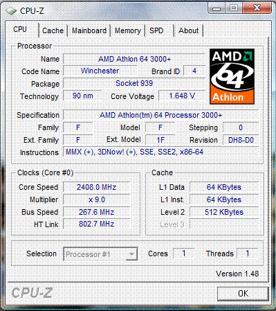 | Процессор (ядро) | AMD Athlon 64 (Winchester) |