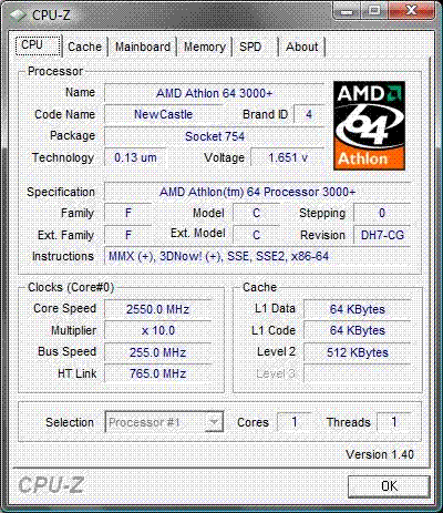 | Процессор (ядро) | AMD Athlon 64 (NewCastle) |