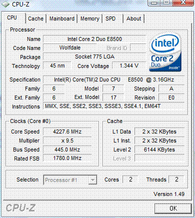 Результат разгона Intel Core 2 Duo (Wolfdale)