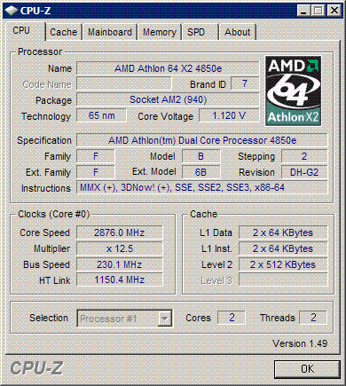 Результат разгона AMD Athlon 64 X2 (Brisbane)