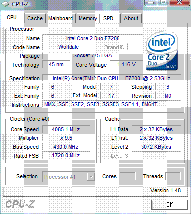 Результат разгона Intel Core 2 Duo (Wolfdale)