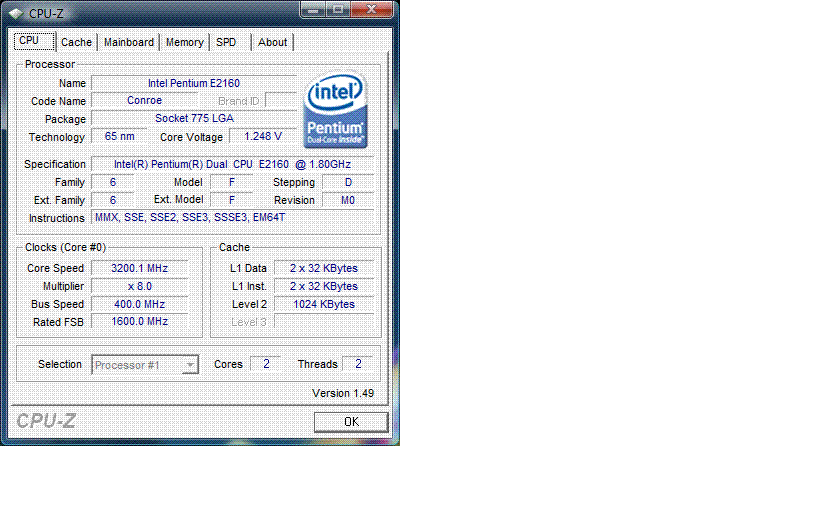 | Процессор (ядро) | Intel Pentium Dual-Core (Conroe-1M) |