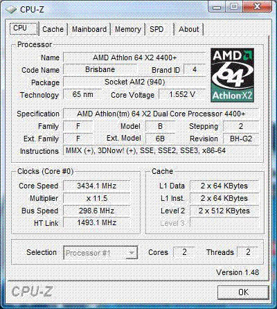 Результат разгона AMD Athlon X2 (Brisbane)