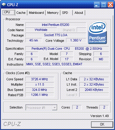 Результат разгона Intel Pentium Dual-Core (Wolfdale-2M)