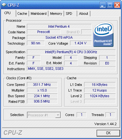 | Процессор (ядро) | Intel Pentium 4 (Prescott) |