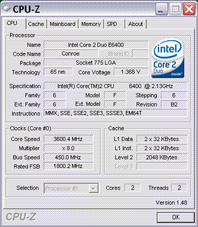 | Процессор (ядро) | Intel Core 2 Duo (Conroe) |