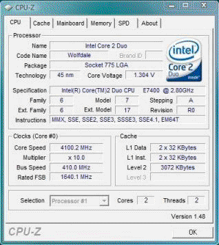 Результат разгона Intel Core 2 Duo (Wolfdale)