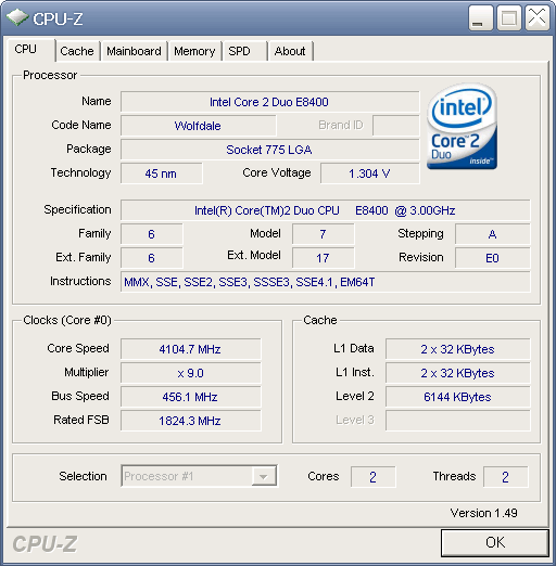 Результат разгона Intel Core 2 Duo (Wolfdale)
