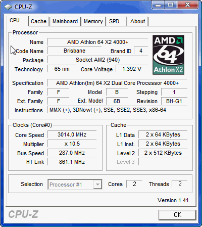 | Процессор (ядро) | AMD Athlon 64 X2 (Brisbane) |