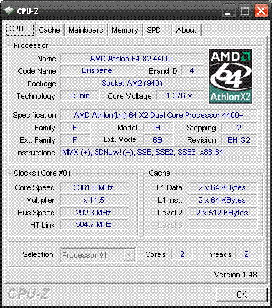 Результат разгона AMD Athlon 64 X2 (Brisbane)