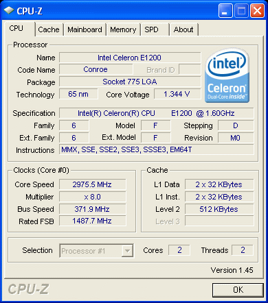 | Разгон, максимально стабильная частота (FSB x Ratio) | 2976 (372 x 8.0) |