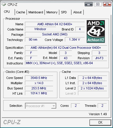 Результат разгона AMD Athlon 64 X2 (Windsor)