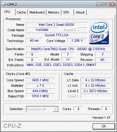 Результат разгона Intel Core 2 Quad (Yorkfield)