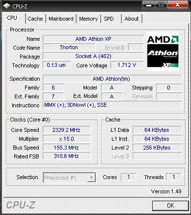 Результат разгона AMD Athlon XP (Thorton)