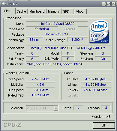 Результат разгона Intel Core 2 Quad (Kentsfield)