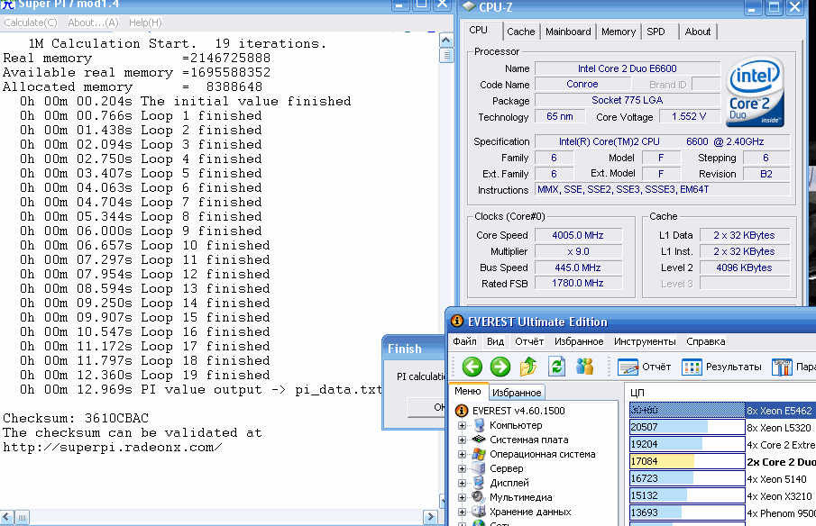 Результат разгона Intel Core 2 Duo (Conroe)