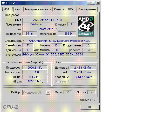 Результат разгона AMD Athlon 64 X2 (Brisbane)