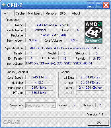 | Процессор (ядро) | AMD Athlon 64 X2 (Windsor) |