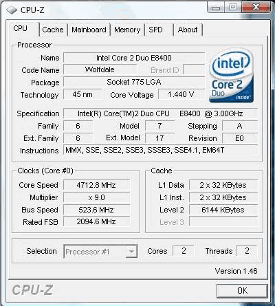 Результат разгона Intel Core 2 Duo (Wolfdale)