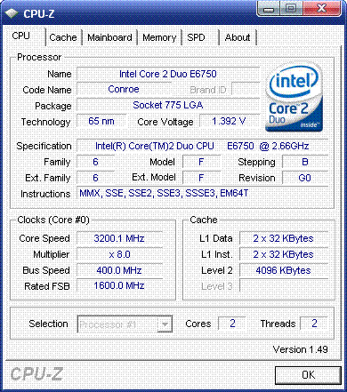 | Разгон, максимально стабильная частота (FSB x Ratio) | 3200 (400 x 8.0) |