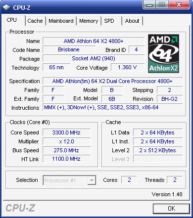Результат разгона AMD Athlon 64 X2 (Brisbane)