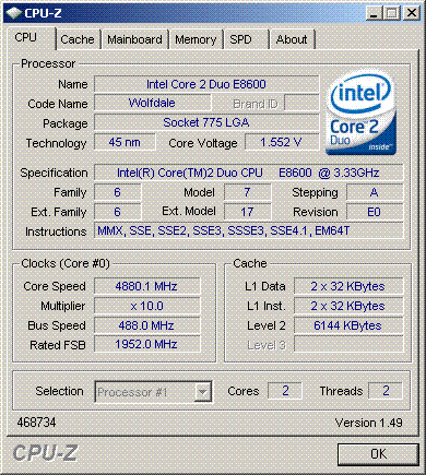 Результат разгона Intel Core 2 Duo (Wolfdale)