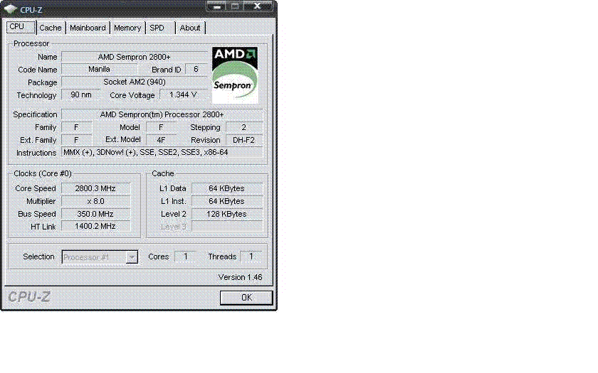| Процессор (ядро) | AMD Sempron (Manila) |