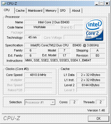 Результат разгона Intel Core 2 Duo (Wolfdale)
