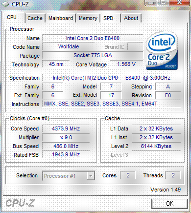Результат разгона Intel Core 2 Duo (Wolfdale)