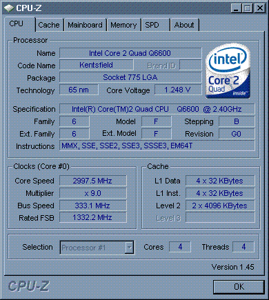 Результат разгона Intel Core 2 Quad (Kentsfield)