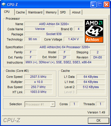 Результат разгона AMD Athlon 64 (Venice)