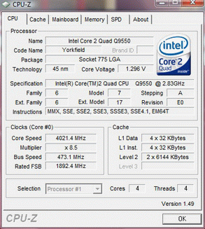 Результат разгона Intel Core 2 Quad (Yorkfield)