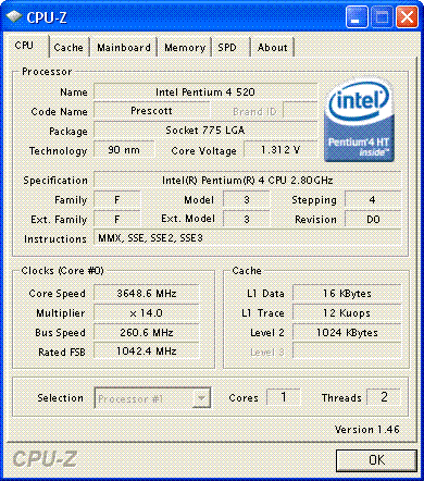 | Процессор (ядро) | Intel Pentium 4 (Prescott) |