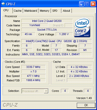 Результат разгона Intel Core 2 Quad (Yorkfield)