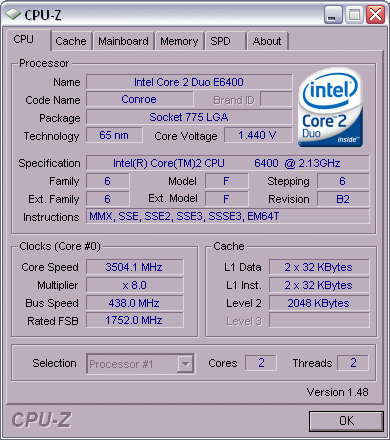 Результат разгона Intel Core 2 Duo (Conroe-2M)