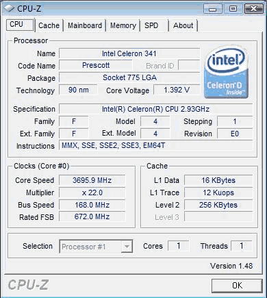 Результат разгона Intel Celeron D (Prescott-256)