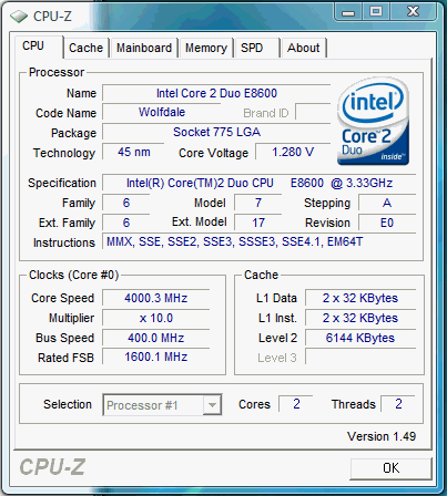Результат разгона Intel Core 2 Duo (Wolfdale)