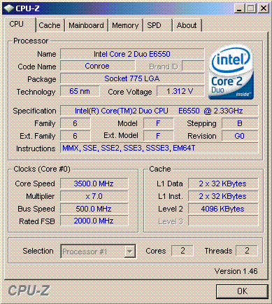 мой камушек - C2D E6550 в тестах на сайте не удалось даже запустить на частоте 490 Мгц(при номинальном напряжении и множителе х7), а мой на 500 проходит тесты(причем мат. плата немного занижает напряжение)