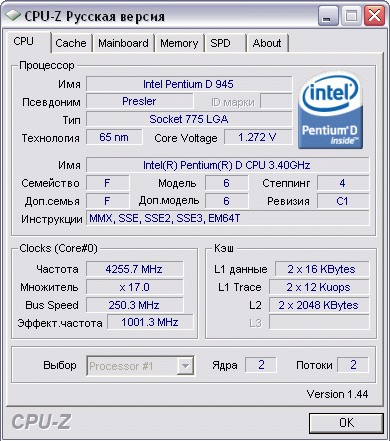 | Разгон, максимально стабильная частота (FSB x Ratio) | 4250 (250 x 17.0) |