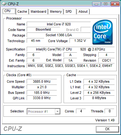 | Процессор (ядро) | Intel Core i7 (Bloomfield) |