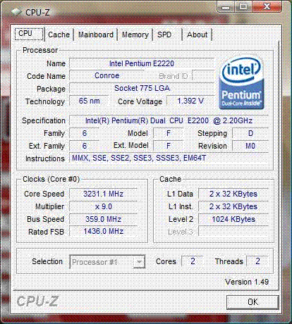| Процессор (ядро) | Intel Pentium Dual-Core (Conroe-1M) |