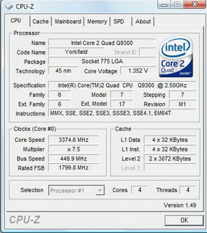 Результат разгона Intel Core 2 Quad (Yorkfield)