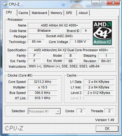 | Процессор (ядро) | AMD Athlon X2 (Brisbane) |