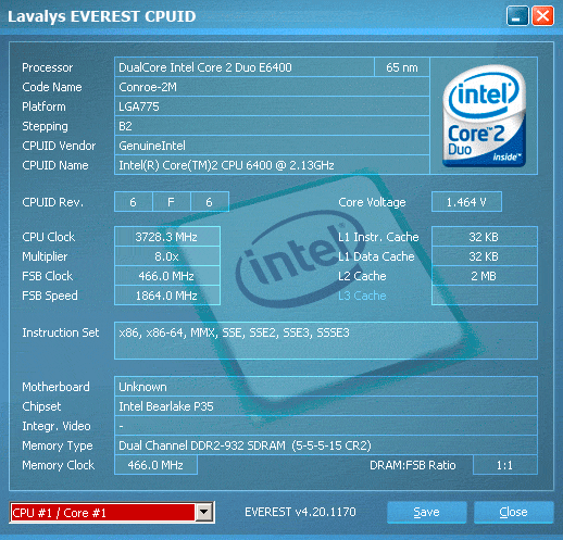 | Разгон, максимально стабильная частота (FSB x Ratio) | 3728 (466 x 8.0) |