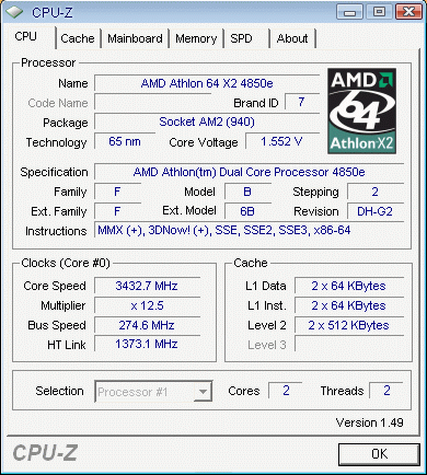 Результат разгона AMD Athlon 64 X2 (Brisbane)