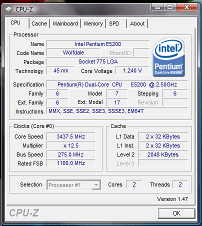 Результат разгона Intel Pentium Dual-Core (Wolfdale-2M)