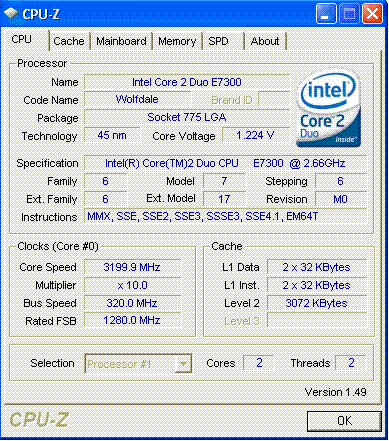 это мой первый опыт разгона core 2 duo пока гонял на боксе и не слишком сильно :) завелся на 3500 но я решил оставить на 3200 что бы не грелся сильно :) пока кулера нормального нету