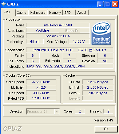 Результат разгона Intel Core 2 Duo (Wolfdale)